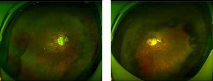 图:容阿姨术前(左)术后(右)眼底广角照相图